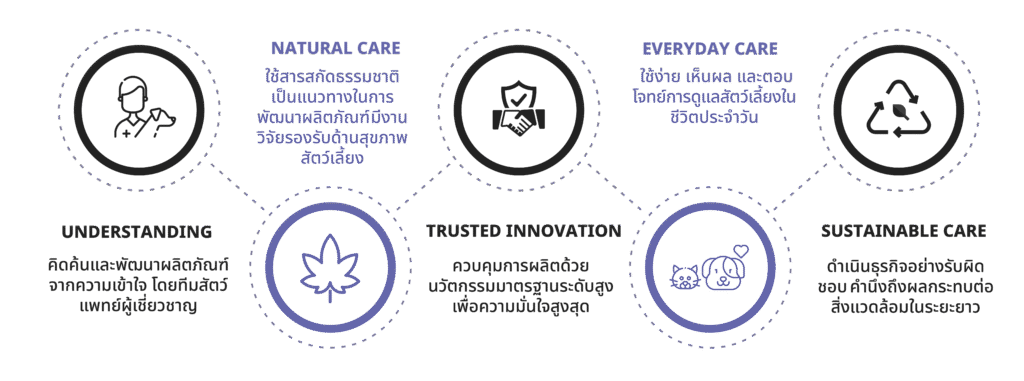 พัฒนาผลิตภัณฑ์ดูแลสุขภาพสัตว์เลี้ยง ด้วยสารสกัดธรรมชาติ มีงานวิจัยรองรับ ผสานความเข้าใจของสัตวแพทย์ เพื่อยกระดับคุณภาพชีวิตสัตว์เลี้ยงอย่างยั่งยืน